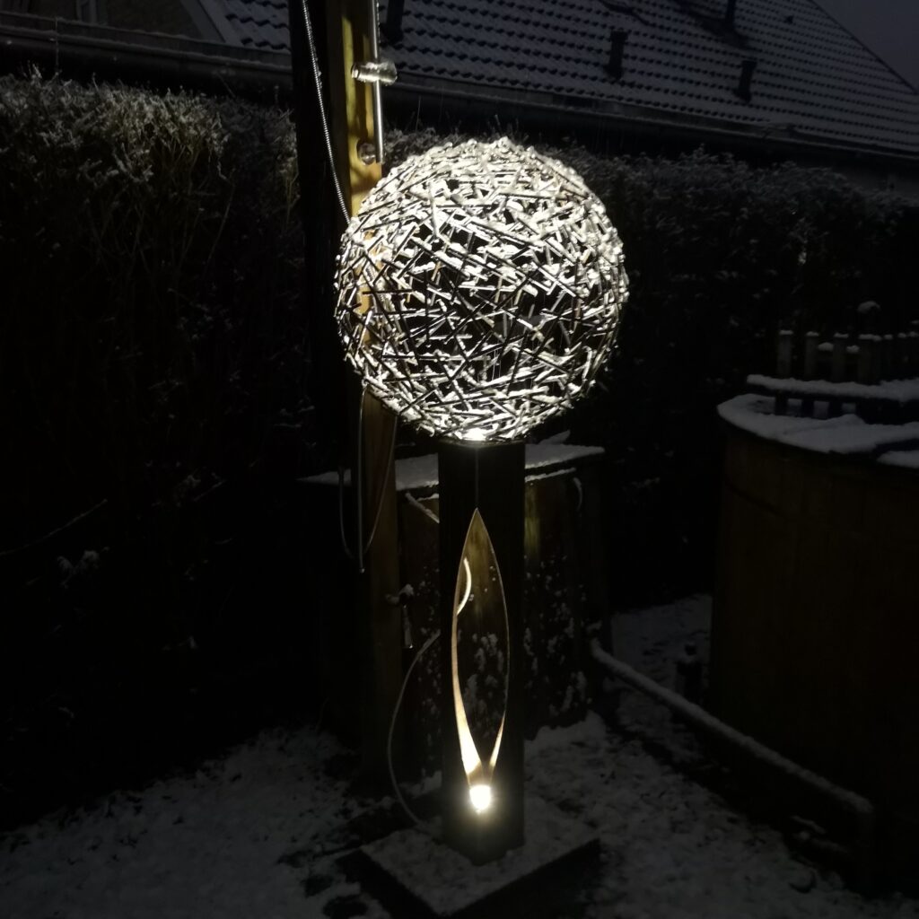 Nedenfor kan du se en timelaps video, som viser lyset i kuglen fra dagslys til mørket falder på.